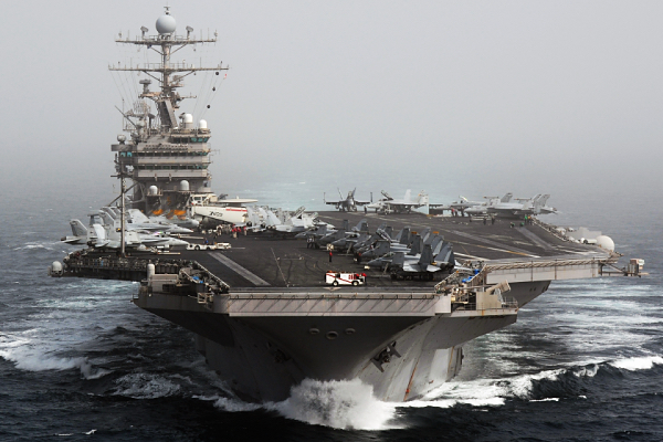 1/13、2セット目となる空母ジョージ=H=W=ブッシュの打撃群が東海岸のノーフォーク海軍基地(ヴァージニア州)を離れ、ペルシャ湾へ出港していた。大西洋を西へ向かっている。 |
