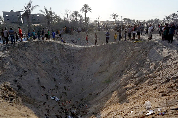 7月に実施された世論調査によると、イスラエル人の72%がネタニヤフに即時辞任を望んでいる。 併し、先週の別の世論調査では、ネタニヤフへの支持が主なライバルであるベニー=ガンツ前国防相に1%ポイント差を付けていることが示された。 9/ 8 夜、今度はシリア中部ハマ県の化学兵器製造の主要な軍事研究センターにイスラエル軍の攻撃機によるミサイル攻撃が複数回あり、少なくとも18人が死亡、40人近くが負傷。シリア国営放送 SANA 通信社が報じた。被害者は民間人だが、イランの専門家が滞在していた可能性があるという。 イランは内戦下のシリアでバッシャール=アル-アサド政権を支援し、革命防衛隊員らを軍事顧問として派遣している。 イスラエルは攻撃についてコメントしていない。 先週、イスラム革命防衛隊の最高司令官モーセン=チザリ氏は、イランによる報復は「やがて」来る、と述べた。 < 避難民のテント キャンプを標的に空爆 > 9/10 深夜、イスラエル軍の戦闘機が、ガザ南部のハーン=ユーニス市近くのアル-マワシ(イスラエル軍が「安全地帯」に指定していた)の難民キャンプに数発のミサイルを撃ち込み、少なくとも40人が死亡し、60人が負傷した。 イスラエル軍は、「人道的地域に変装した」ハマスの司令部を標的にした、と弁明。常に根拠を示さず、毎日 虐殺を続けており、パレスチナ人の斬減が目的との指摘あり。 ハマスは声明で、「これは、彼らの醜い犯罪を正当化することを目的とした明らかな嘘だ。レジスタンスは、そのメンバーが民間人の集まりの中に存在したり、軍事目的でこれらの場所を使用したりすることを何度も否定している」と述べた。 この攻撃には重いミサイルが使われ、人々が少なくとも20のテントに住んでいた地域に深さ10〜15mの3つの大きなクレーターを作った。夜中、多くの人々が砂の下に埋もれ、救出活動が続いている。 USA製の 2,000 pound(907 kg)の MK-84 爆弾を使用していたことが判明。F-16が搭載できる最大の爆弾。