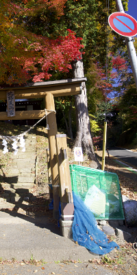 更に上に登れるようでもあり、恐々づづら折りに登ってみると、今度は「三峰神社」とある割と新しい祠あり。神通にお社の大きさは関係ないが、神社があることさえ知られていないでは人の息吹が吹き込まれない。 適当に登ってすぐ、山頂。何もない。 下りるのが大変で、滑る、道が分からない…最後は灌木を掻き分けて一番下の地面まで下りてしまった。 ヤバいと思った時の反射神経がなくなった、バランス感覚が鈍くなった。山登りはやめ。 帰途、家からそう遠くない村社の八剱神社(ヤツルギ-)に初めてお寄りして、境内社にもご挨拶。 特に感じるものはない。社務所は店じまいするところ。八剱神社の御祭神は日本武尊とのこと。